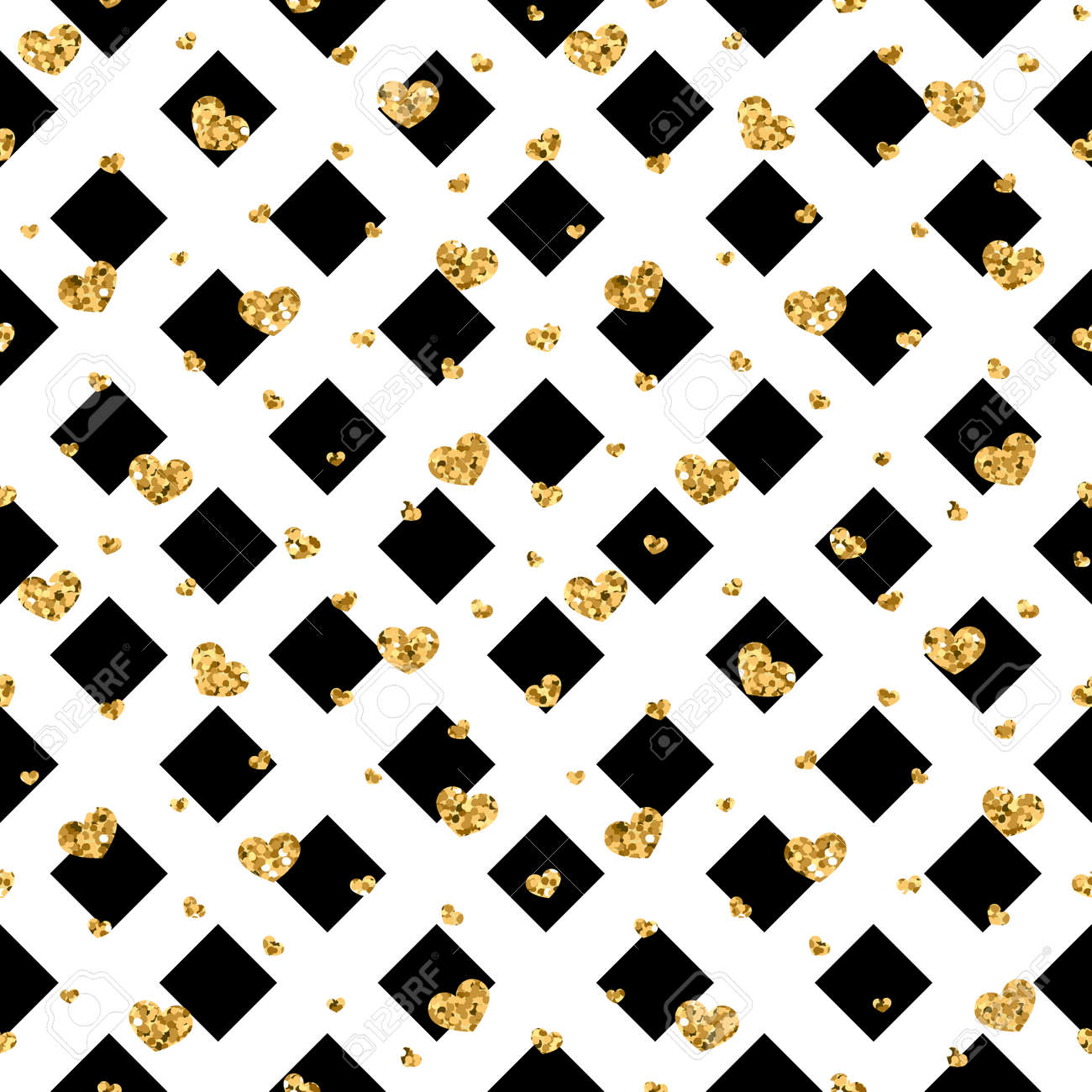 Gold Heart Seamless Pattern Black White Geometric Decoration